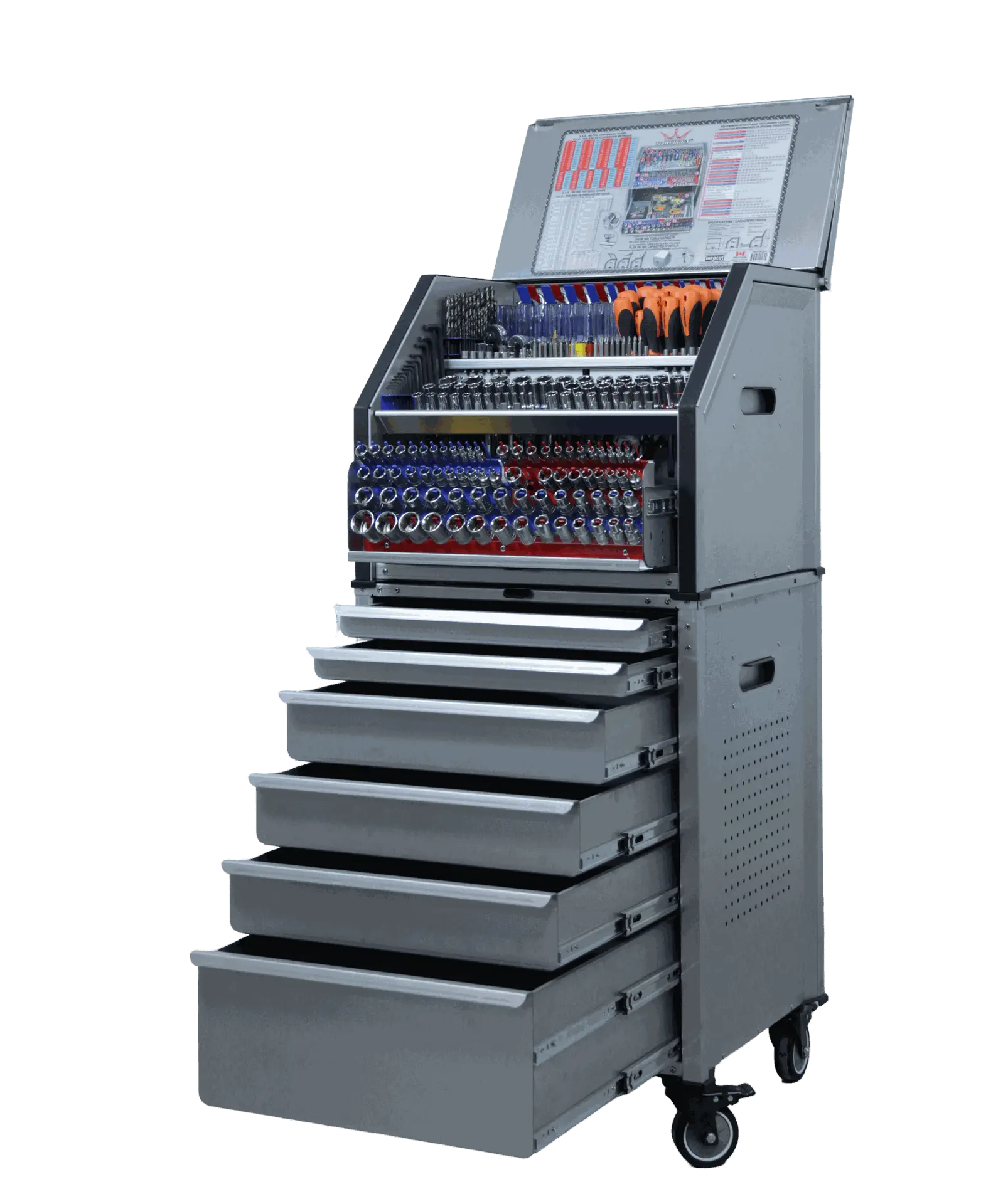 The ToolCube+ 24” is our smallest base unit and is compatible with all of our standard 24" ToolCube products. It can be used on its own but it's designed to be the base of your tool storage system. Stack and attach Tool Crown 24" and/or any of our ToolCube products or accessories on top this ToolCube+ 24" to create a customized storage system that perfectly meets your needs. ToolCube+ features a pull-tab lock that keeps the drawers from sliding out while its moving (without having to keep track of a tiny key!) Add a padlock to the pull-tab lock to keep your tools extra secure. It is built with heavy-duty 20-gauge aluminized steel and designed to store a wide variety of small and large tools—from hand tools like wrenches and screwdrivers to power tools like drills, jig saws, jointers, rotary tools, batteries, and chargers.